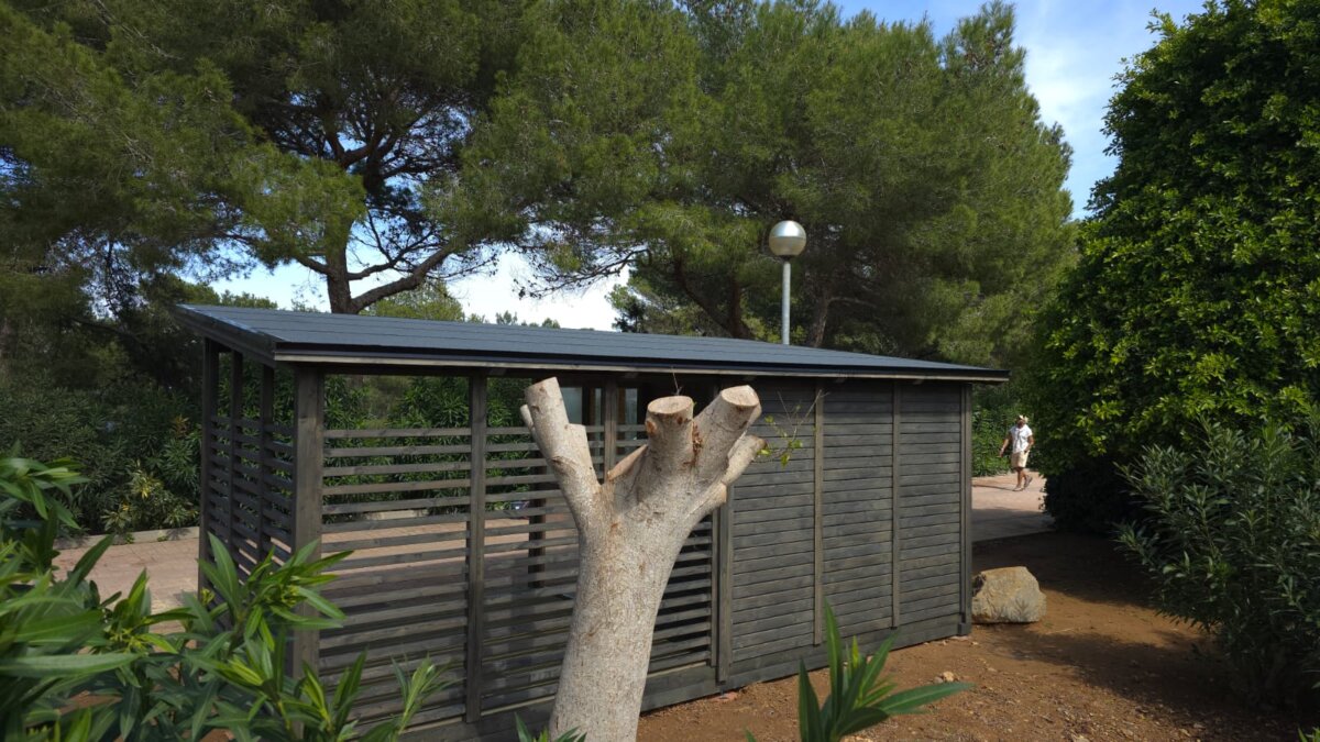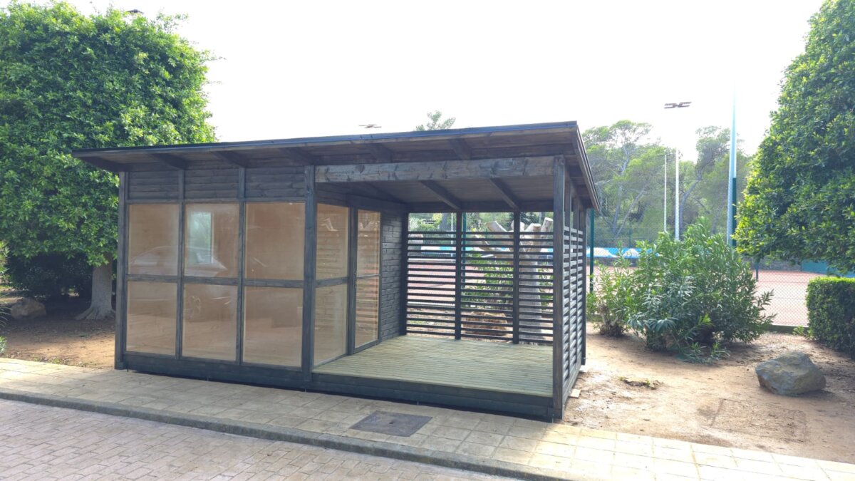 El proyecto se realizó para Invisa Hotel Club Cala Verde y la caseta se utilizará para guardar material deportivo.