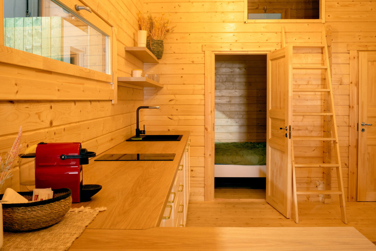 Esta caseta incluye una cocina a medida totalmente equipada, que se puede ordenar junto con la caseta y ser instalada por nuestro equipo. Ofrecemos muebles de cocina personalizados en cualquier tamaño para garantizar un ajuste perfecto a su caseta.