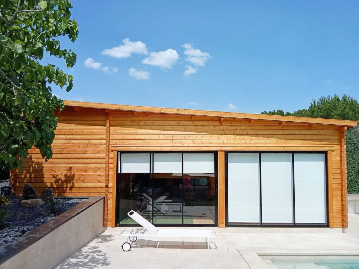 We recently completed an exciting custom garden room project in Majadahonda, Madrid. The structure measures 3 x 7 meters and was designed as a multifunctional garden lounge located next to the client’s swimming pool. It includes a comfortable lounge area, a golf simulator, and a home cinema.