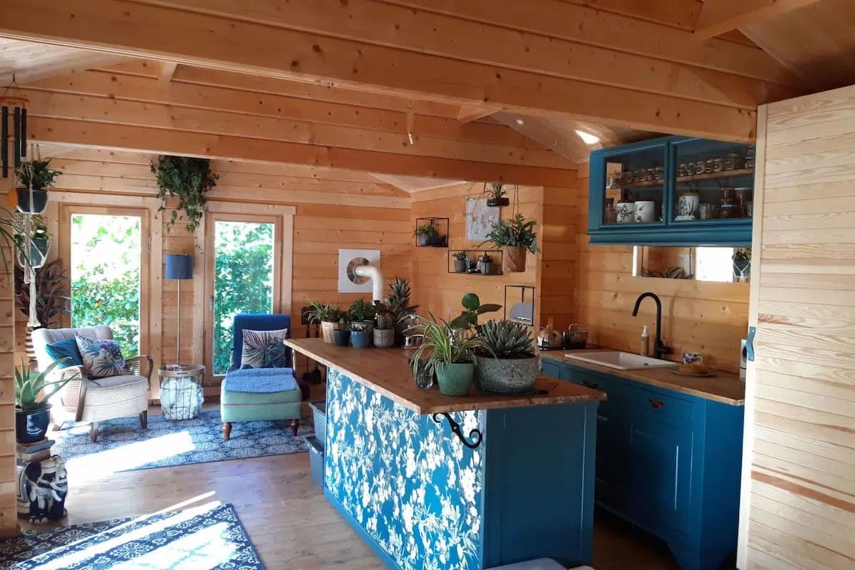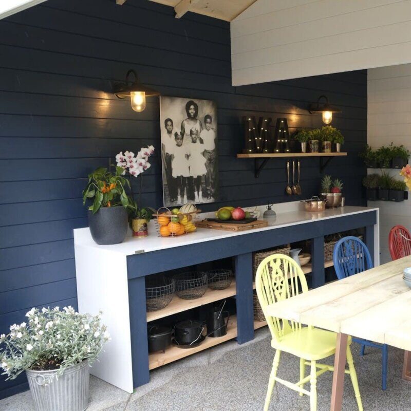 2. What’s your garden room’s purpose? A home office benefits from focus-enhancing blues and greens. Creative studios pop with stimulating colors. Need a relaxation space? Go for soft, natural tones with colorful accessories for personality. Entertainment areas? Be bold!