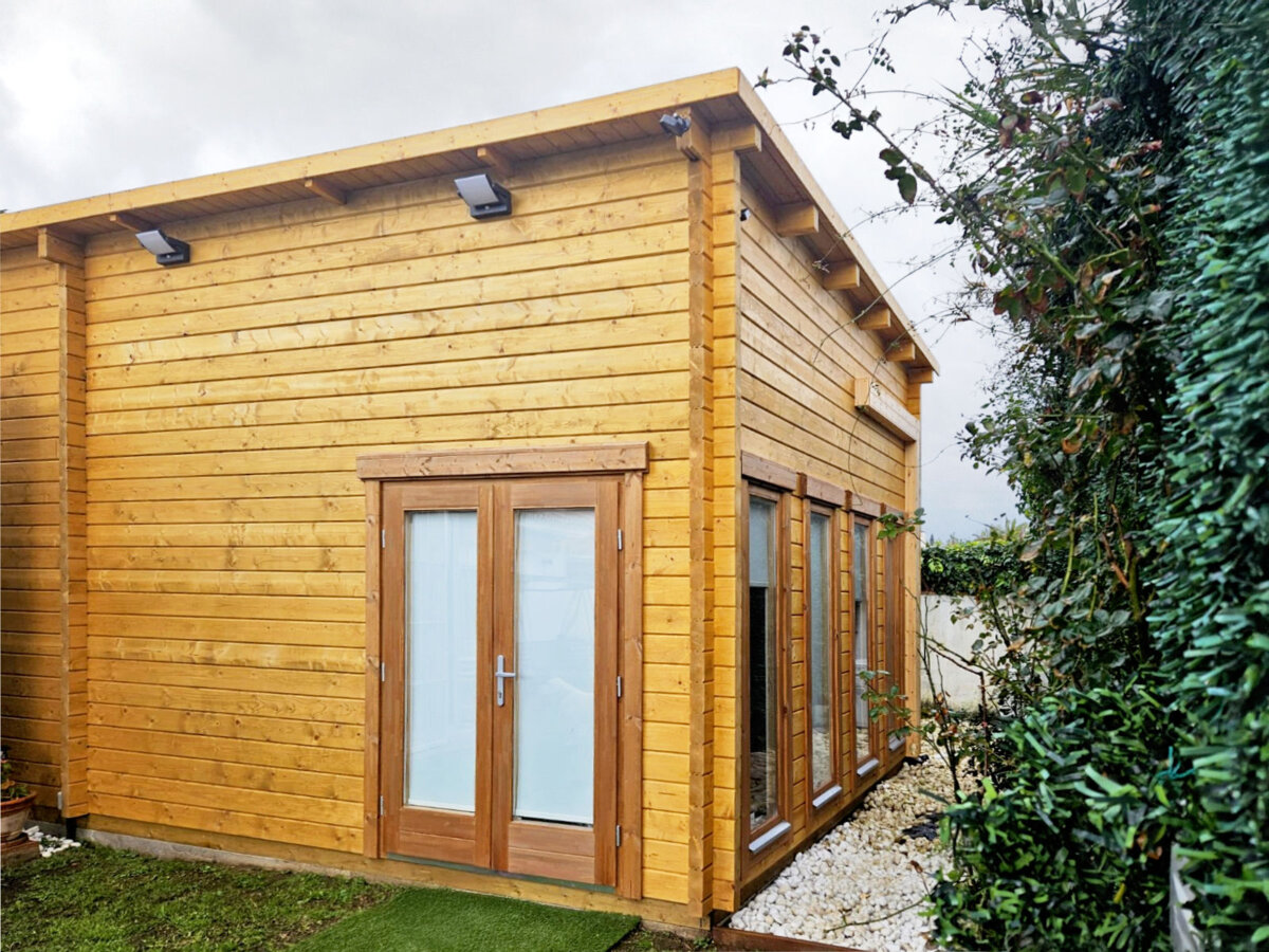 Upon receiving the order, we made a few adjustments to the cabin based on our customer’s preferences. These included minor modifications to the doors and windows, as well as a slight adjustment to the cabin’s height. Other than that, we produced and built our standard 70mm garden room, incorporating all our high-quality features: