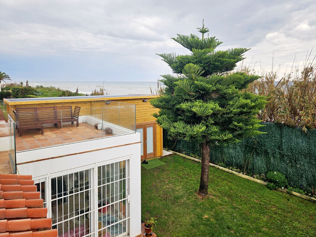 Here are some photos and details of a slightly modified garden room, “Golf 4,” which we built in the garden of a beachfront holiday villa in beautiful Elviria, Marbella, for a family from England.