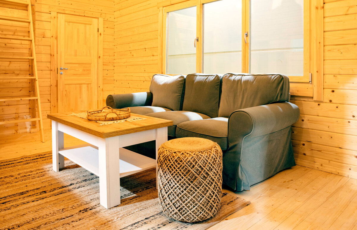 To give you some ideas and inspiration on how to furnish the cabin on a budget, we have equipped it with a sofa, dining chairs, sofa table, bed, bed side table and other furniture from IKEA and JYSK, all together within an 1000-euro budget.