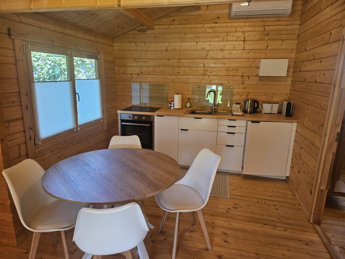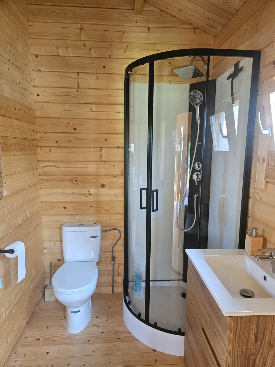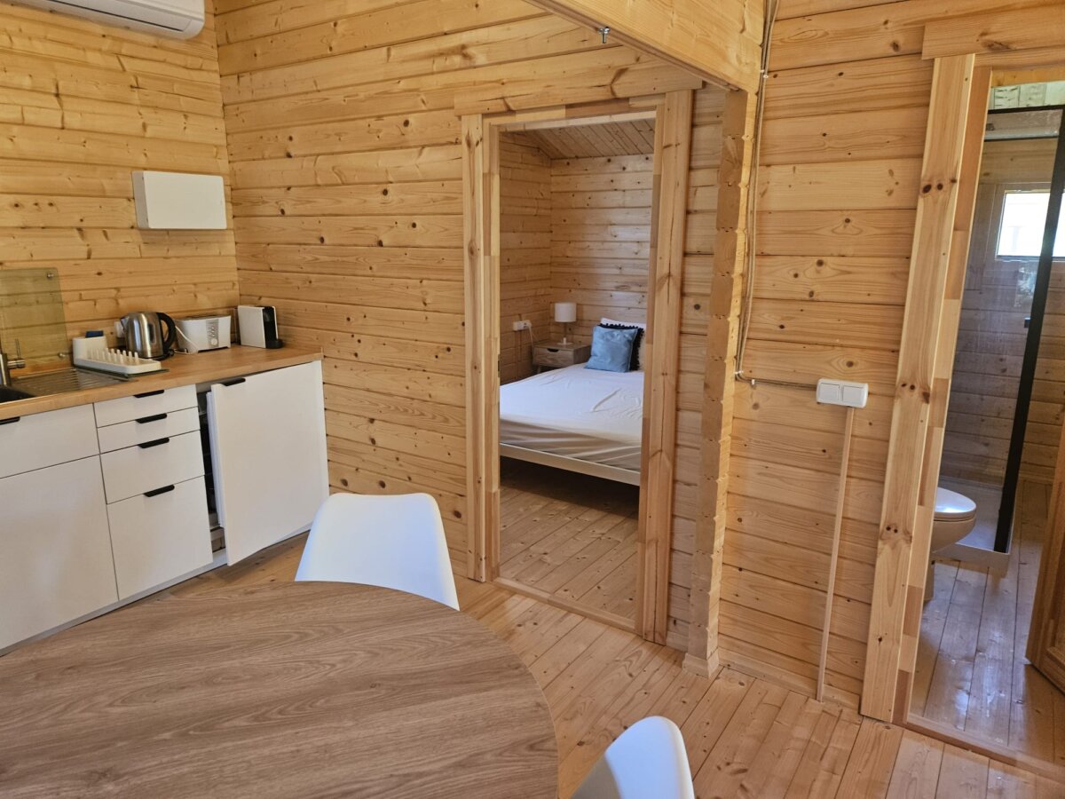Our customer chose two models for this project: the two-bedroom, 42 m² log cabin “Ireland” and the 27 m² one-bedroom log cabin “Stefan 2.” Both cabins feature 70mm thick walls to ensure better thermal resistance, strength, and a very long lifespan. These cabin kits come with double-glazed doors and windows, German-made tilt and turn window systems, quality door mechanisms, extra thick 28mm floorboards, 18mm roof boards, pressure-treated foundation beams, interior doors, strengthening metal rods for inserting into walls, and all necessary metal fixings.