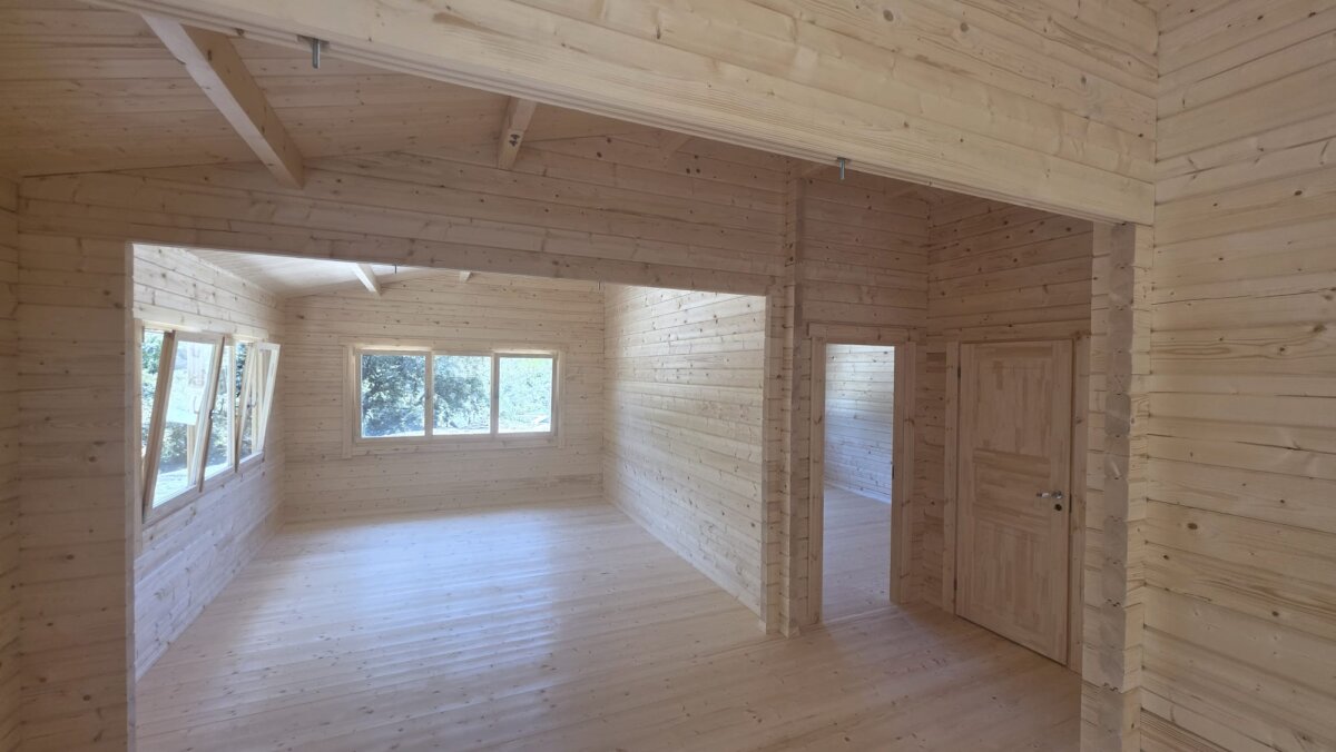 Now that our part of the project is finished, the clients will take over the remaining work. They plan to paint the cabin themselves, after which their carpenter will install the bathrooms, electricity, kitchen, and all other necessary fittings to make the holiday home fully functional and ready for use.
